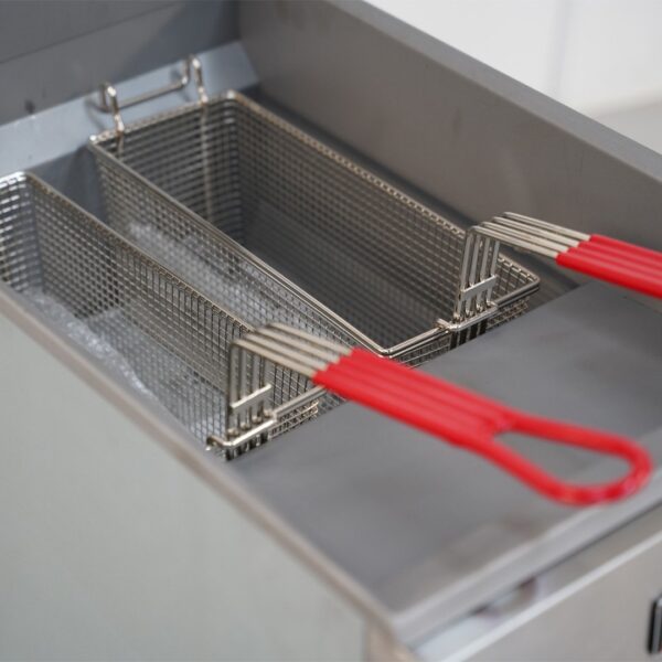 Product Specifications: External Dimensions: 40cm x 76cm x 132cm (WxDxH) Tank Dimensions: 36cm x 35cm x 24cm (WxDxH) Basket Size:  16cm x 34cm x 15cm (WxDxH) Power: 26.4kw / 90080 BTU Weight: 65kg Temperature Range: 93°C to 204°C Capacity: 23L   Product Features: