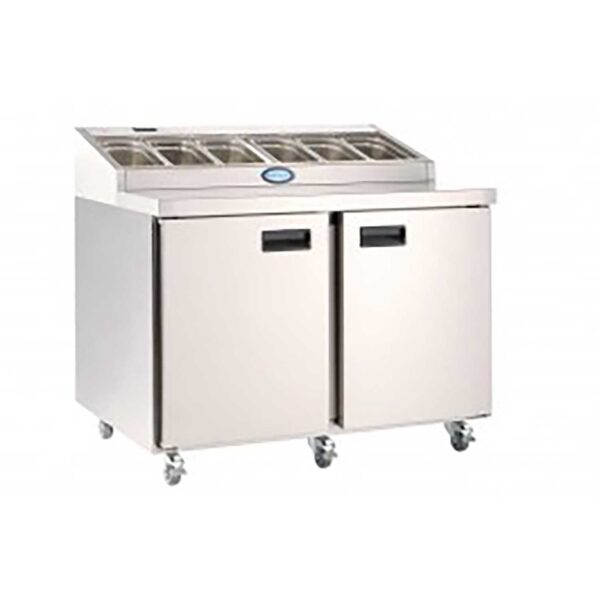 Equipped with a fan assisted forced air refrigeration system to ensure even temperature is delivered to the counter base and pan storage section.