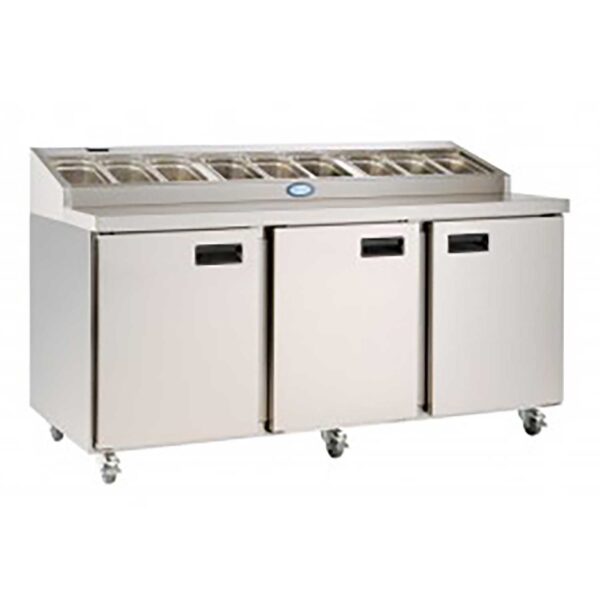 Capable of holding fresh ingredients at the point of preparation the Foster FPS3HR/15-154 Refrigerated Prep Counter is fitted with fan assisted forced air refrigeration system delivering even temperatures to the counter base and pan storage section whatever the surroundings.